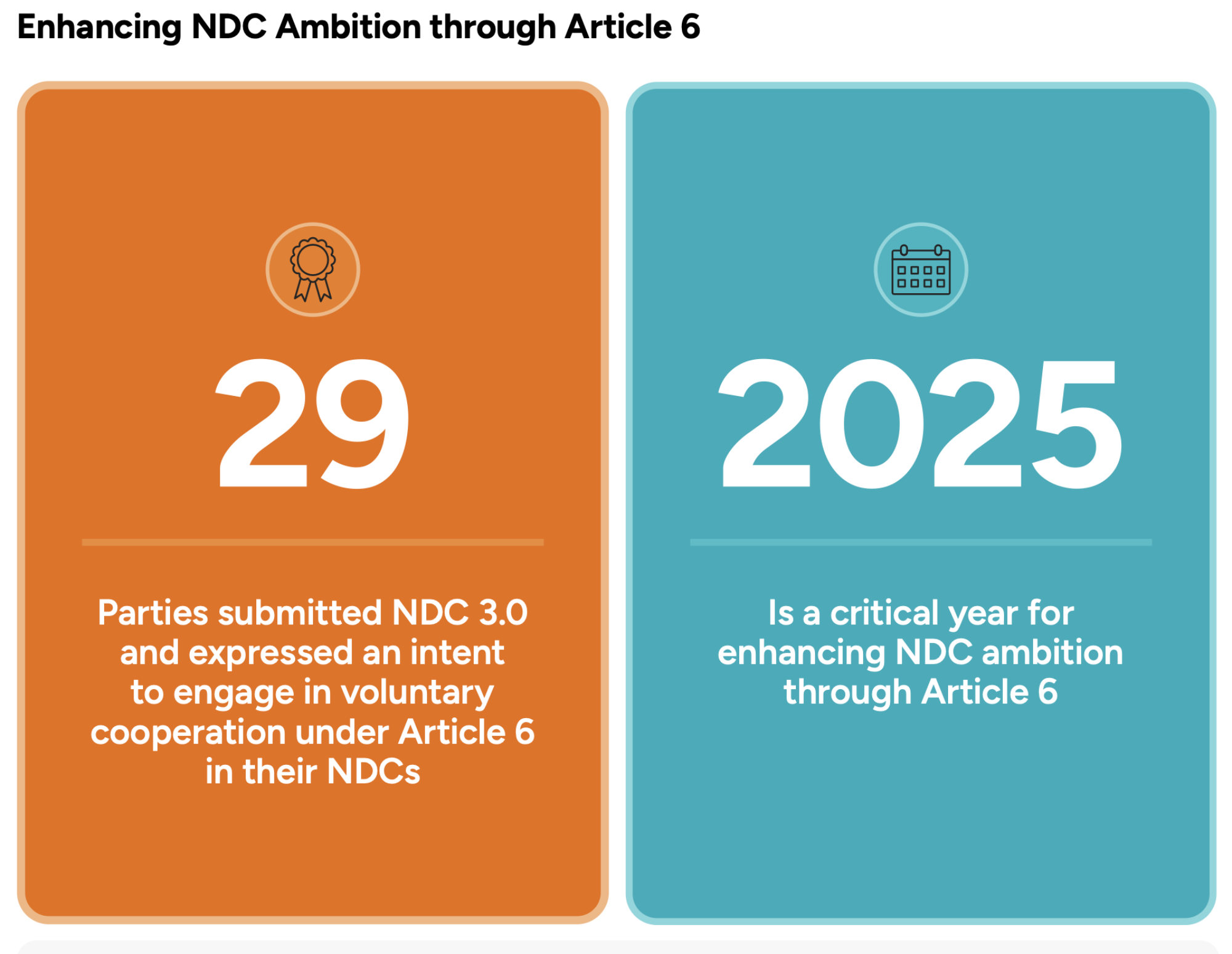 The year 2025 is critical for enhancing ambition: A total of 29 Parties have submitted NDC 3.0 and expressed an intention to engage in voluntary cooperation under Article 6 in their NDCs as of mid-August. Coordinated international cooperation and tailored capacity-building efforts will be essential to address gaps, strengthen policy frameworks, and promote robust implementation.